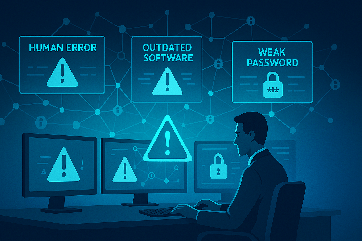 Van menselijke fouten tot verouderde software en slecht wachtwoordbeheer: dit blok zoomt in op de meest voorkomende én gevaarlijke zwaktes in systemen van vandaag. Met concrete tips én realistische scenario’s leer je waar het bij de meeste bedrijven fout loopt.