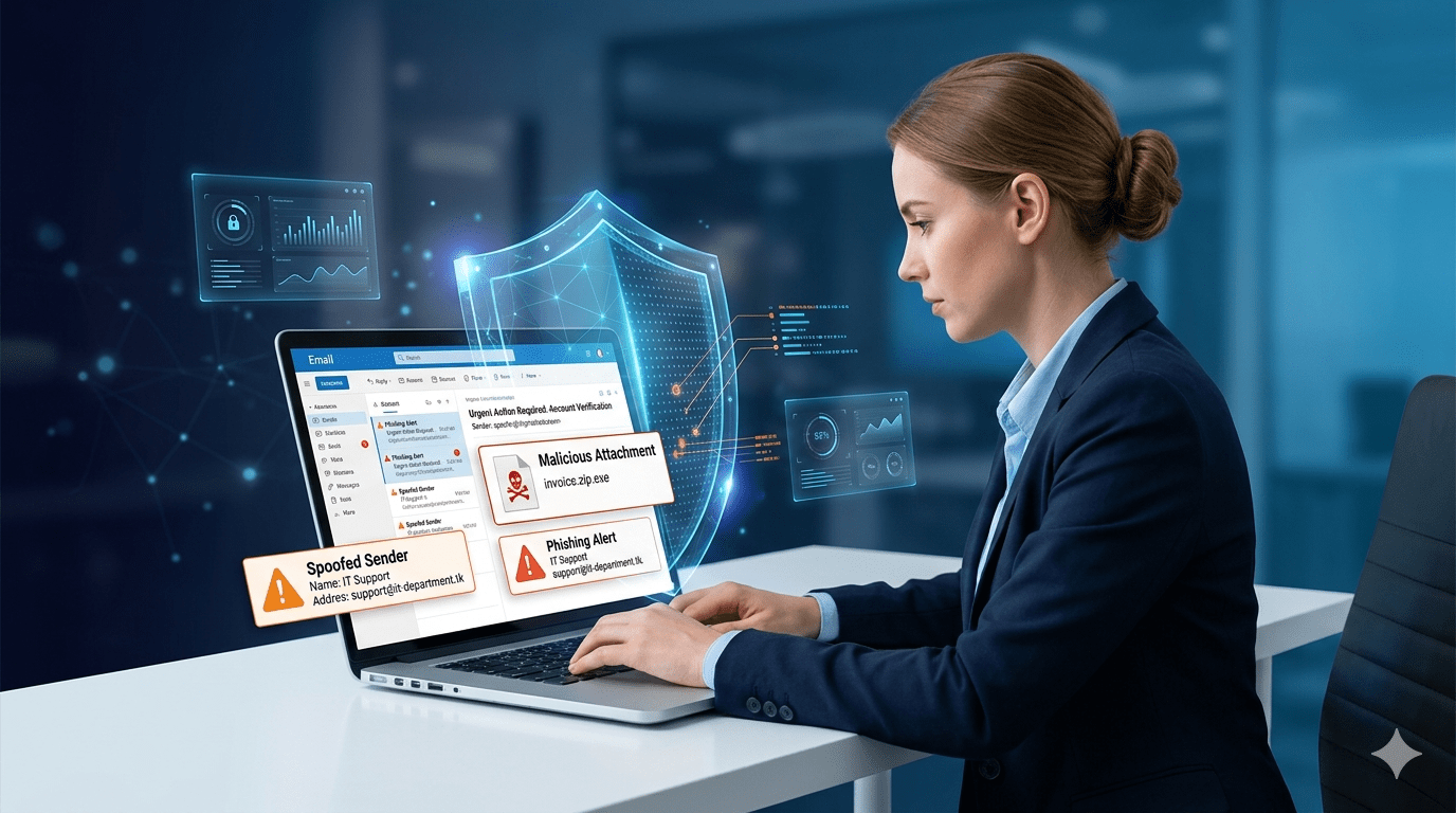 E-mail blijft hét kanaal voor cyberaanvallen. Leer hoe je legitieme van valse berichten onderscheidt, waarom bijlagen gevaarlijk kunnen zijn en hoe spoofing werkt. Goede e-mailhygiëne is cruciaal in elke organisatie.
