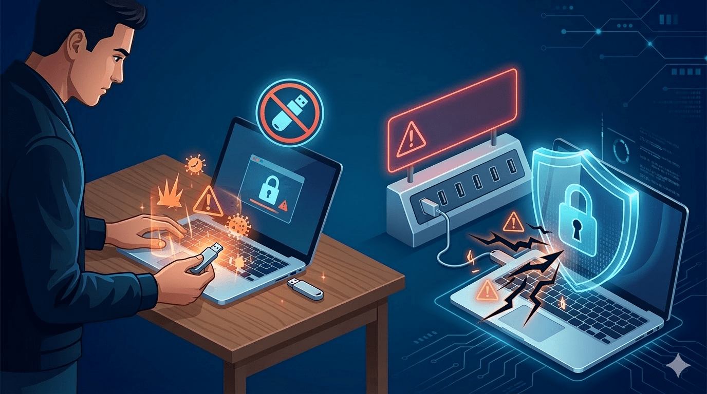 Even snel die gevonden USB-stick bekijken? Niet doen! Externe toestellen kunnen malware bevatten die automatisch op je toestel wordt geïnstalleerd. Leer hoe je jezelf (of je bedrijf) hiertegen beschermt én waarom zelfs het opladen van je smartphone in het openbaar niet altijd veilig is.